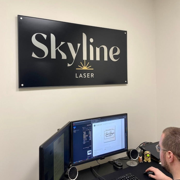 We laser cut your logo from 1/4" acrylic or 1/8" specialty acrylic (available in brushed, mirrored, glossy, or matte finishes) in color(s) of your choice.